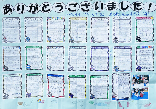 広谷小学校より、お礼の寄せ書きを頂きました!
